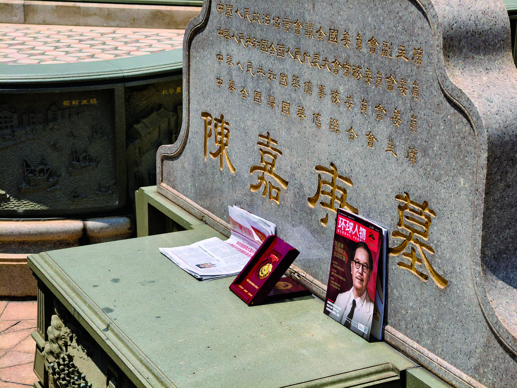 陈立人先生将纪念章呈放在鳌园陈嘉庚墓前,告慰祖父