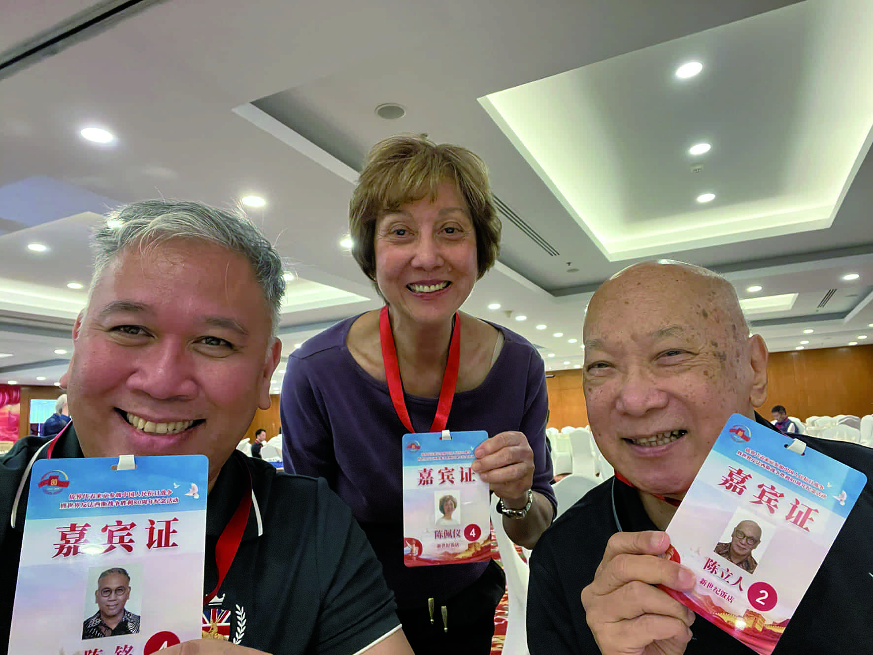 陈嘉庚后裔陈立人(右)、陈佩仪(中)、陈铭(左)受邀到京观礼