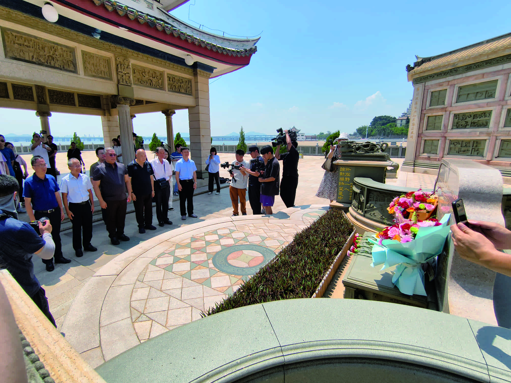 2025-5,4 陈嘉庚先生长孙陈立人携“中国人民抗日战争胜利80周年纪念章”返厦,到鳌园献花告慰祖父