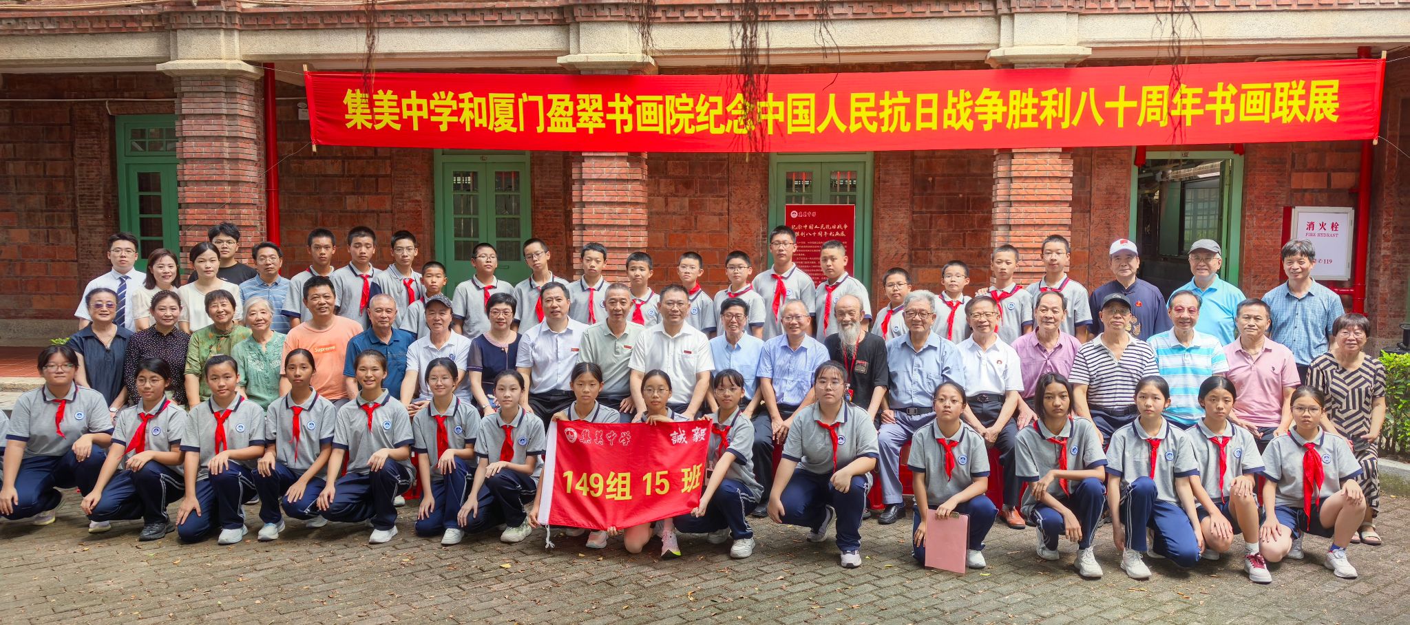 集美中学和厦门盈翠书画院纪念中国人民抗日战争胜利八十周年书画联展,于“九一八”事变纪念日,在华侨抗日女英雄李林烈士的母校——集美中学隆重举行。