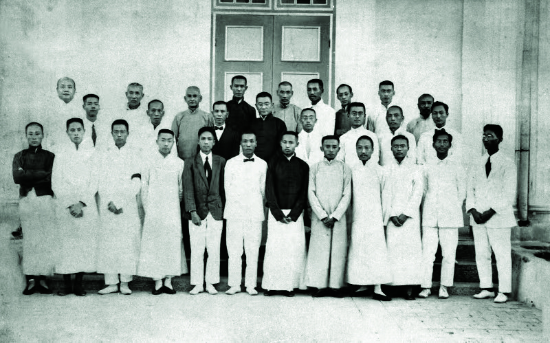 陈庆南(前排右1)与陈敬贤(二排左5)、集美学校校长叶渊(前排左5)、厦门大学校长林文庆(前排左6)等合影(图片来源:陈嘉庚纪念馆)