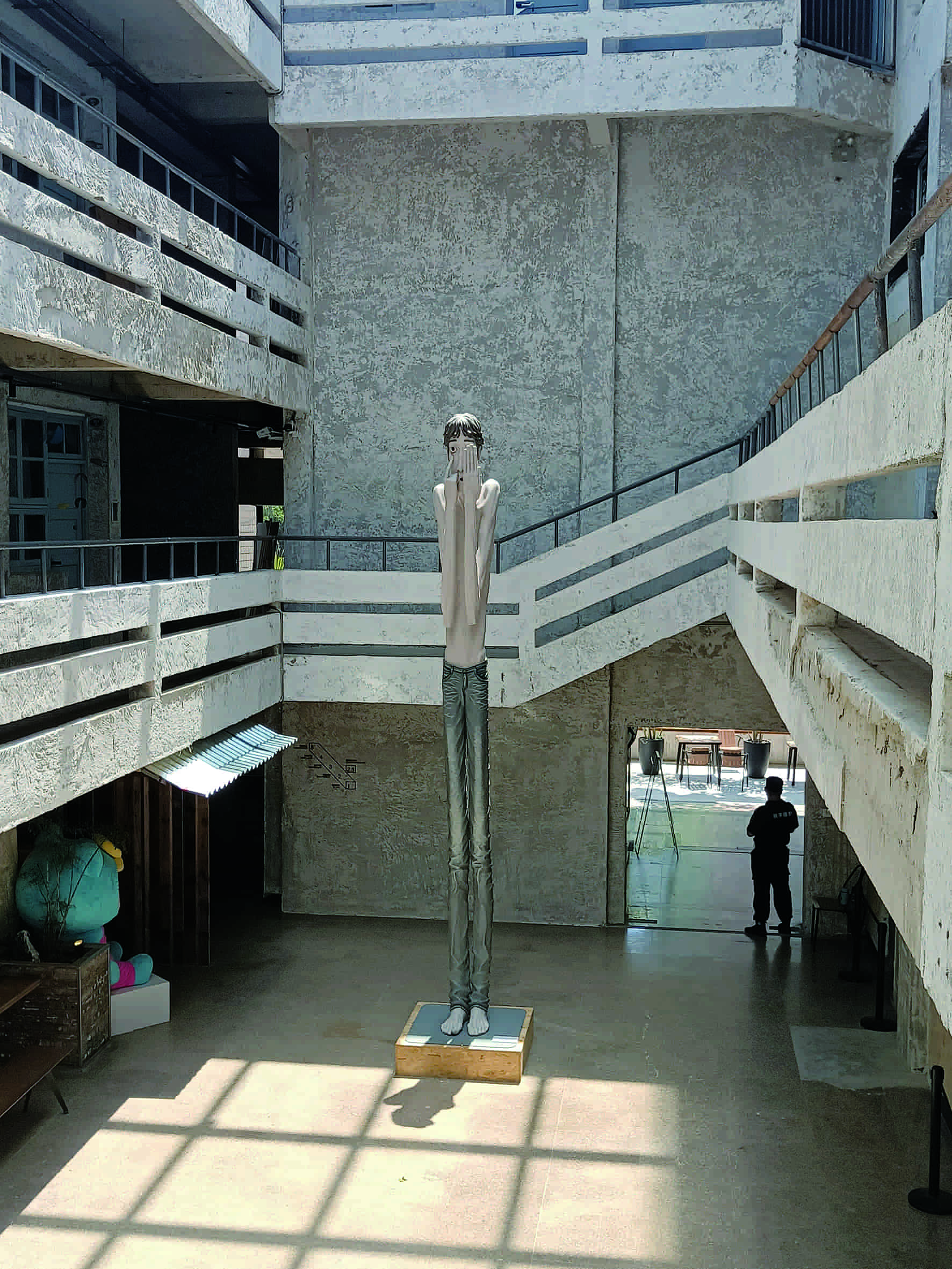 “美好设计”的意趣,在集美街道早已悄然渗透。且看石鼓路97号,那褪下肃穆黑袍的集美老法院旧址。阳光穿过新生的玻璃穹顶,在曾经的审判庭地面游弋。斑驳石墙内,王坤昭的《都市过客》以八米孤影叩问苍穹,对面《无灯的浴室镜子》则无声折射着灵魂的褶皱。法槌的回响之地,已然化作美学的呼吸场域。移步楼上的“逗留聚场”,咖啡香与油彩气息彼此晕染。青年设计师的草图在风中簌簌低语,白发教授与红点奖得主的辩论声撞上百年砖墙,激荡出奇妙的混响。旧日档案室蜕变为“呼吸的褶皱”展厅,钢筋与光影编织的装置如城市脉络般起伏,影像在斑驳墙面上静静流淌成诗。而轮换的展品和陆续入驻的艺术家,是策展方用心的呈现。