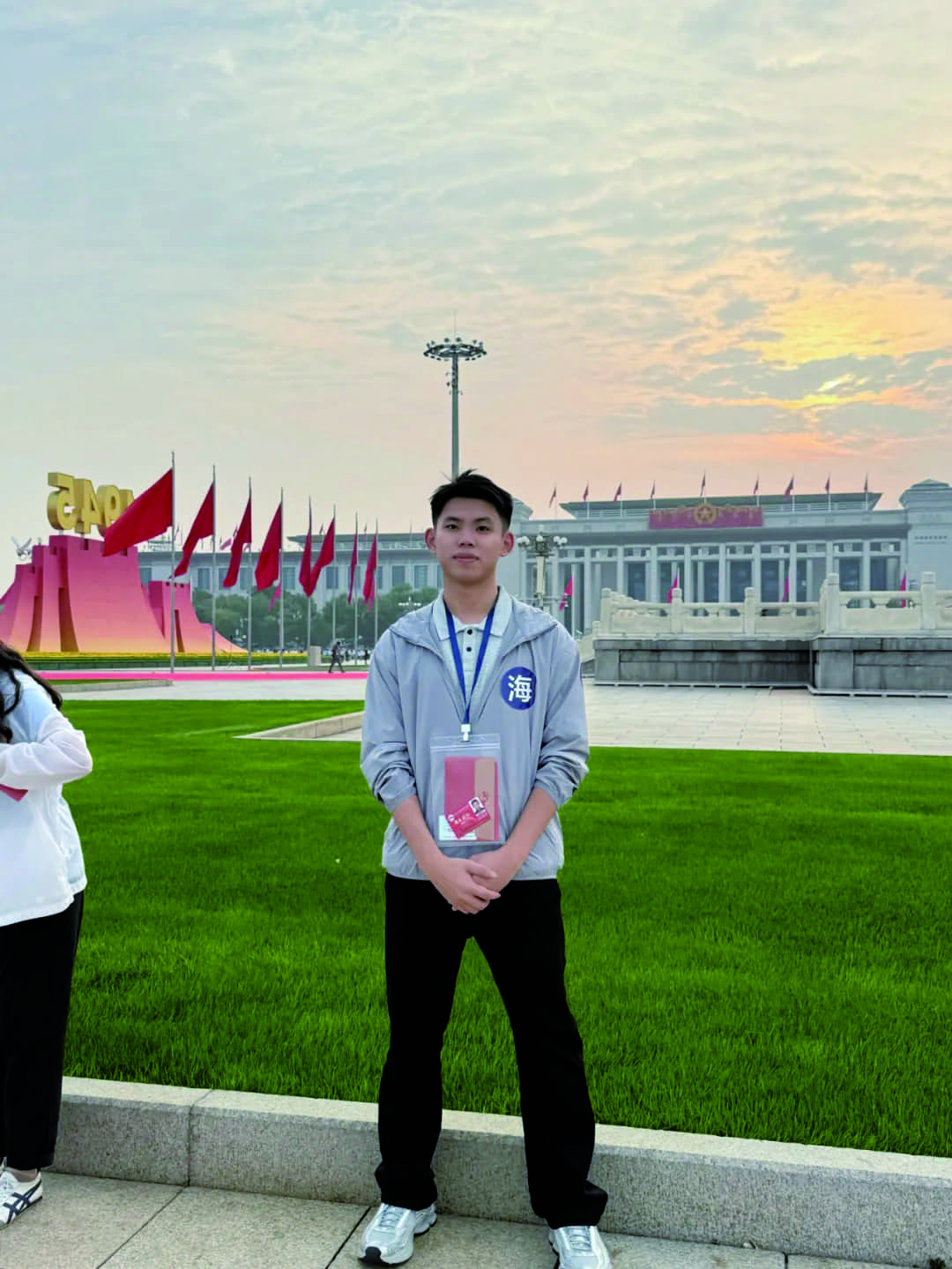 谢景川说:“作为海洋信息工程学院2025届毕业生,我有幸来到北京工作,并受邀到现场观礼。得知这个消息时,我激动得整夜难眠。到达现场后,所有人都沉浸在庄严而热烈的氛围中。当一个个军种方阵整齐划一地正步走过,我深深感受到人民军队的纪律性与战斗力。随后,战旗方队缓缓而来,军乐团奏响雄壮的礼乐,无数承载着先辈精神的战旗引领着各式先进装备,浩浩荡荡地驶过眼前——那一刻,我真正明白了什么叫‘钢铁洪流’”。作为新时代的青年,我们应当铭记历史、珍视和平,传承先辈的精神,为祖国的繁荣昌盛贡献自己的力量。”