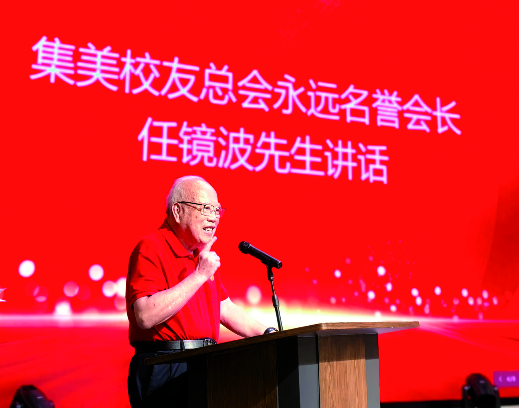 集美校友总会永远名誉会长任镜波应邀出席,他在讲话中强调:“铭记抗战历史,必须大力弘扬伟大的抗战精神,陈嘉庚先生在抗战时期的大无畏精神和卓越贡献,是抗战精神的重要组成部分。2014年习近平总书记给集美校友总会的回信,是新时代弘扬嘉庚精神的指导思想和行动指南。”他还传达了全省贯彻落实“大侨务”观念,打好新时代新“侨牌”座谈会的精神,并指出:“漳州是著名侨乡,也是集美校友、华侨抗战女英雄李林的家乡,漳州校友会具有‘涉侨’的特色和优势,应当在打好新时代新‘侨牌’中发挥积极作用” 。