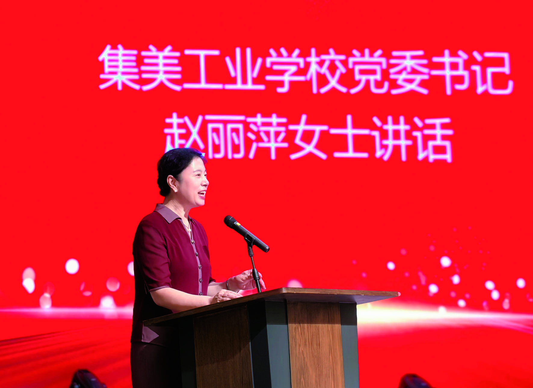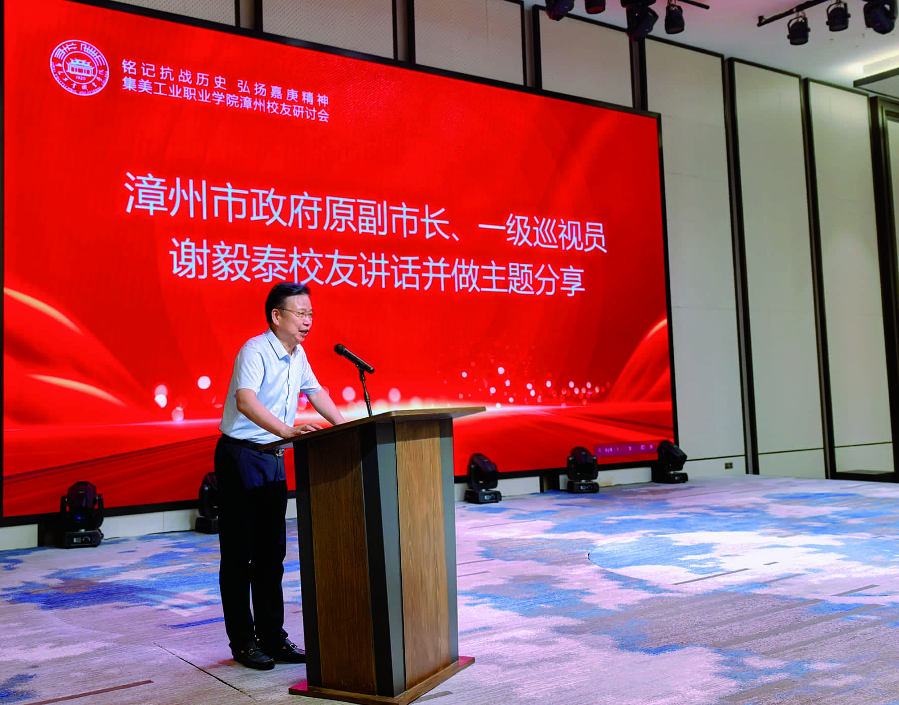 林坤乐校友致欢迎词后,漳州市政府原副市长、一级巡视员谢毅泰校友作主旨发言。谢毅泰校友多年来每次作主旨发言都充分准备,此次他分享了个人学习习近平总书记在“九三”大阅兵式上讲话的体会,以及陈嘉庚先生在抗战期间的伟大贡献。集美工业学校党委书记赵丽萍向与会校友报告了学校获批设立集美工业职业学院的历程,以及学校在2025年全省职业院校技能大赛教学能力比赛中斩获一金、一银、三铜的优异成绩。她还结合自身几次在北京参观中国华侨历史博物馆的感受,生动地宣讲了嘉庚精神。